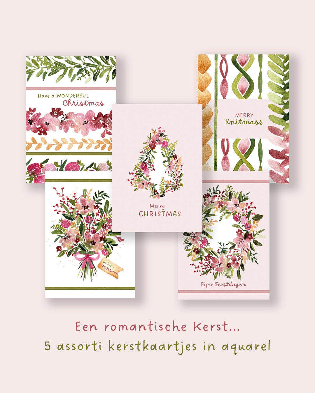 Feestelijke set van 5 kerstkaartjes uit de collectie 'Winterse Warmte'